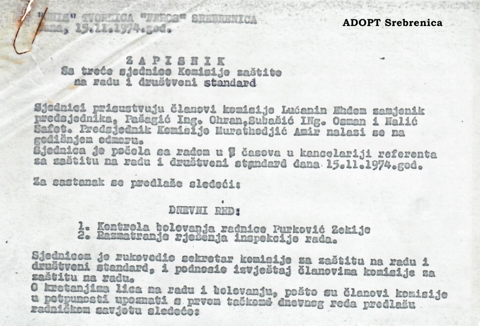 No:3-3-0-ZP21; Zapisnik sa treće sjednice Komisije zaštite na radu i društveni standard; UNIS-Tvornica "Feros" Srebrenica;